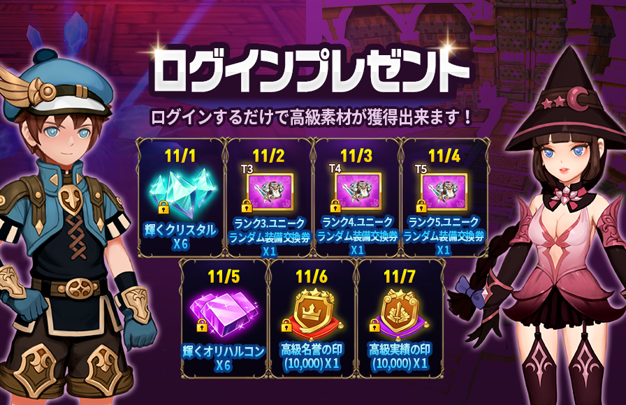 私達はユーザーの皆様に向けて特別なログイン報酬イベントを準備しました! 詳細については、下記を参照してください。