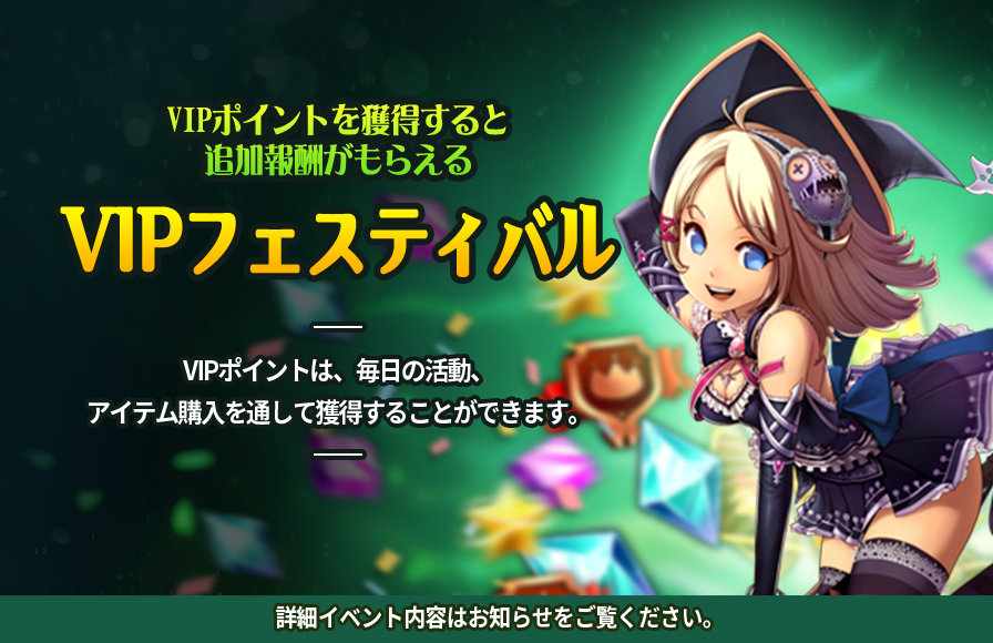 説明:イベント期間中にVIPポイントを獲得して追加報酬を獲得して下さい。