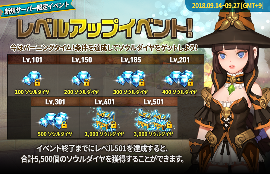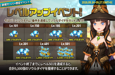 説明:レベルを上げてソウルダイヤを手に入れよう!