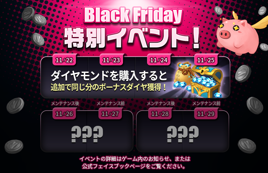 11月22日から25日まで, ダイヤモンドを購入すると、100%のダイヤモンドを追加で獲得できます!