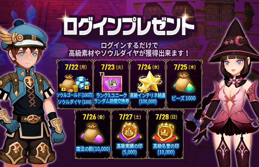 私達はユーザーの皆様に向けて特別なログイン報酬イベントを準備しました! 詳細については、下記を参照してください。