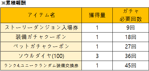 説明:ダンジョンをクリアすることで、クリア回数に応じて様々なアイテムを獲得できます。
