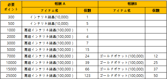 ●イベント報酬(ゲーム内の「報酬」 - 「デイリースコア」を参考にしてください。)