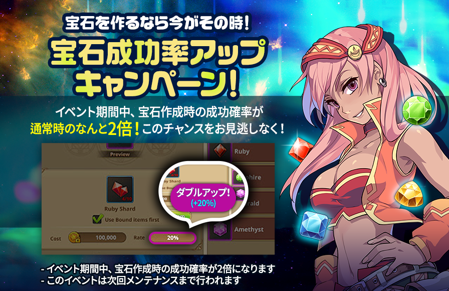 説明:イベント期間中、宝石製作時の成功確率が通常時の2倍に増加します。