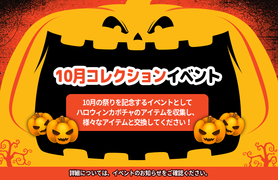 「ハロウィンカボチャ」のアイテムは2021.10.13 23:59以降はドロップされません。