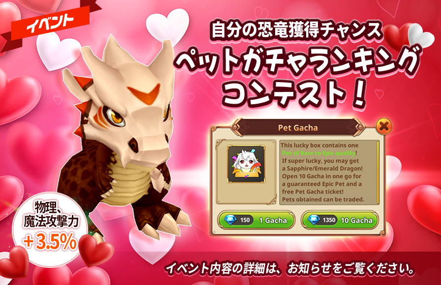 1.イベント期間中にペットガチャで消費したダイヤモンド1個毎1ポイントを獲得できます。