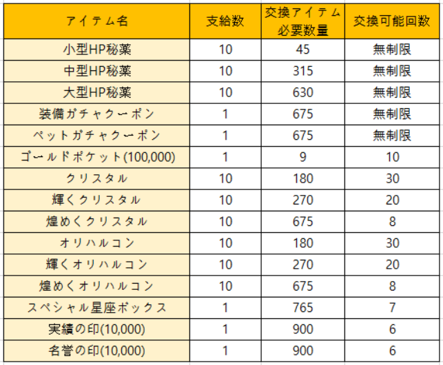 「バレンタインチョコ」をスペシャルイベントで以下のアイテムに交換することができます: