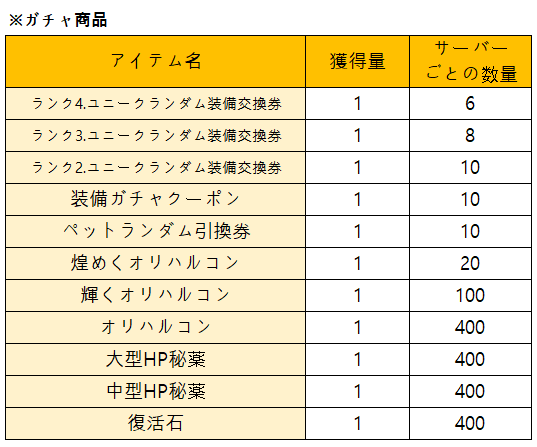 該当のガチャを利用して多様なアイテムを獲得したり、珍しいアイテムを獲得する機会を活用ください!