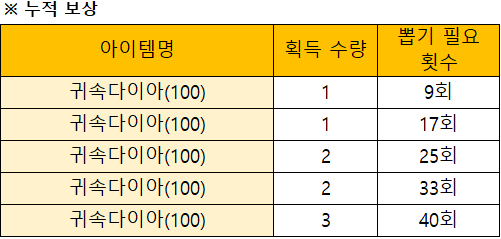 10회 뽑기 시 소모되는 재화: 5000만 귀속 골드