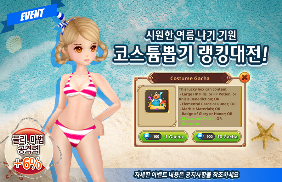 설명: 아주 진귀한 코스튬을 여러 개 뽑을 수 있는 코스튬 뽑기를 하시고 상품도 얻을 수 있는 기회!