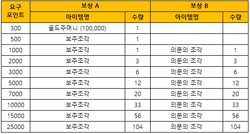 이벤트 기간 중에 획득 할 수 있는 보상은 아래와 같습니다.