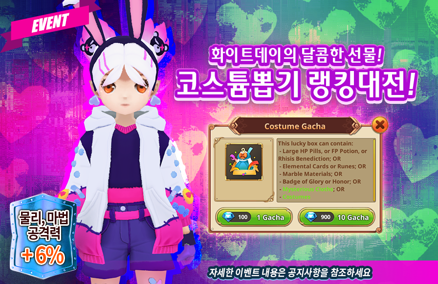 설명: 아주 진귀한 코스튬을 여러 개 뽑을 수 있는 코스튬 뽑기를 하시고 상품도 얻을 수 있는 기회!