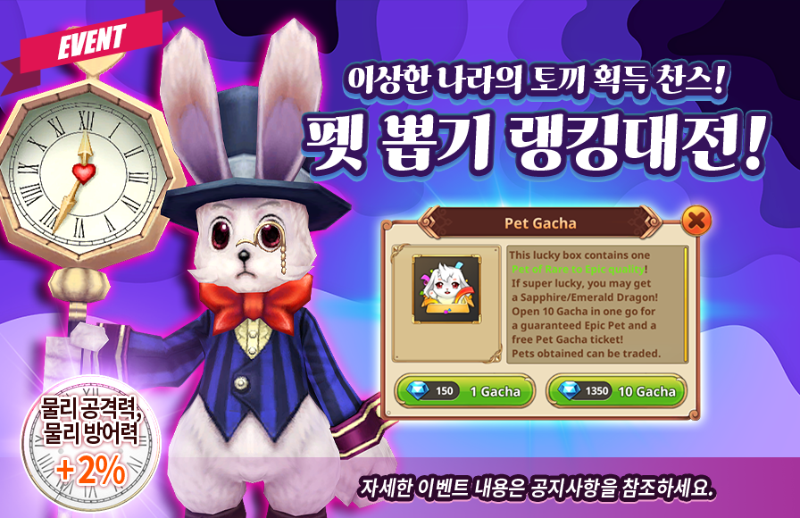 설명: 아주 진귀한 펫을 여러 개 뽑을 수 있는 수호 펫 뽑기를 하시고 보상도 얻을 수 있는 기회!