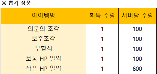 • 안쿠의 무덤 1회 완료: "글자A" 아이템 5개