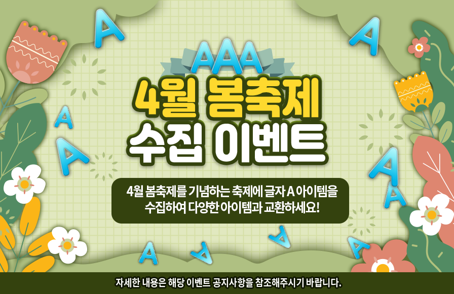 "글자A" 아이템은 2025.04.16 23:59 이후로는 드롭되지 않습니다. 하지만 해당 아이템은 2025.04.17 23:59까지는 교환이 가능합니다. 해당 교환기간이 지난 이후 그 다음 점검기간에 인벤토리에서 삭제될 예정입니다. 그 기간 전에는 귀속골드로 판매가 가능합니다.