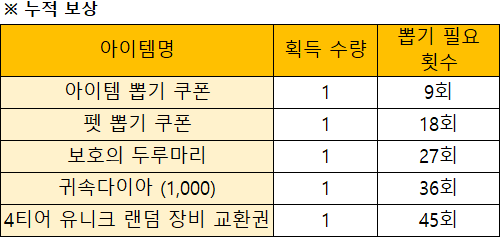 2. 누적 포인트 보상 기준 달성 시 해당 포인트 보상을 우편을 통해 즉시 획득할 수 있습니다.