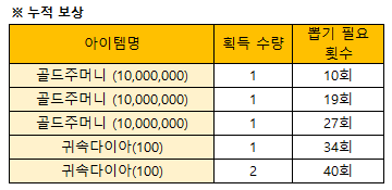 이벤트 보상은 아래의 표를 참조해주시길 부탁드립니다.