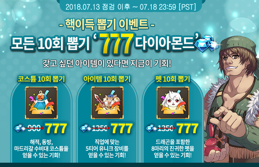 기간: 2018.07.13 점검 이후 ~ 07.18 23:59 [PST]