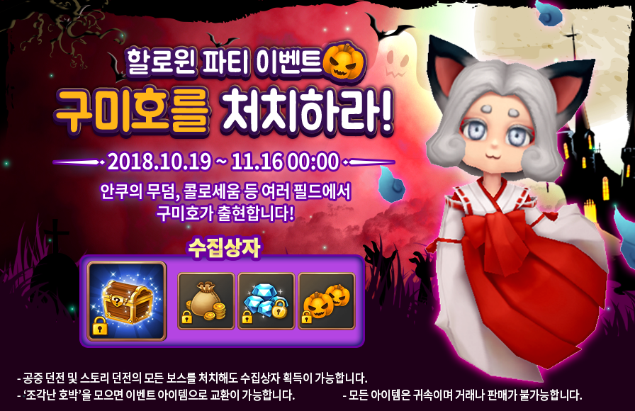 설명: 안쿠의 무덤, 콜로세움 등 여러 필드에서 구미호가 출현합니다!