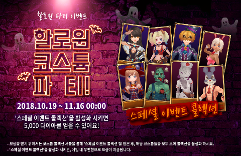스페셜 이벤트 콜렉션의 코스튬들을 모두 모아 콜렉션을 활성화 시키면, 게임 내 우편함으로 5,000 다이아를 보내드려요!