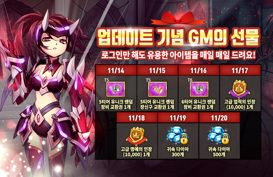 - 11/16 6티어 유니크 랜덤 장비 교환권