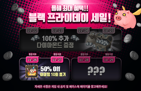 오늘 새로운 블랙 프라이데이 이벤트 설정을 위한 짧은 점검이 있을 예정입니다.