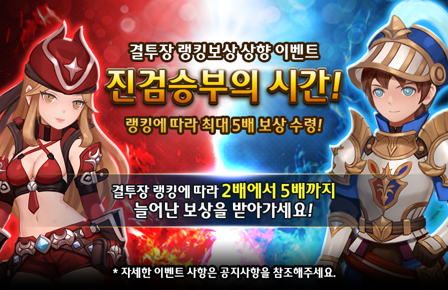 설명: 각 서버 별 결투장 랭킹에 따라 다양한 고급 아이템을 획득할 수 있습니다. 이벤트 참가는 도전 – 결투장에서 다른 플레이어들에게 도전하여서 포인트를 얻어 랭킹을 올리시면 됩니다.
