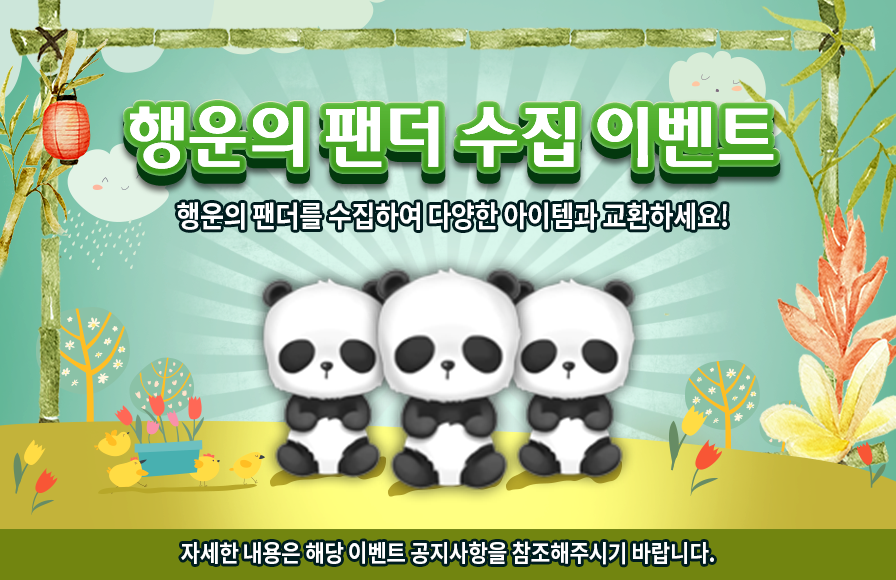 매일 던전 또는 다른 활동을 하면 행운의 팬더 아이템을 얻을 수 있습니다. 행운의 팬더를 스페셜 이벤트에서 다른 아이템으로 교환해가세요.