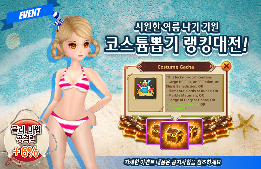 설명: 아주 진귀한 코스튬을 여러 개 뽑을 수 있는 코스튬 뽑기를 하시고 상품도 얻을 수 있는 기회!