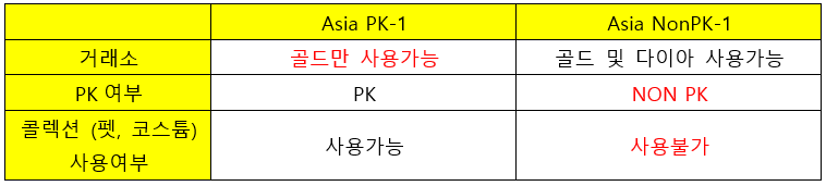 기존의 모든 한국 지역 서버와 대만 지역의 모든 서버가 하나로 통합되어 Asia PK-1 서버로 통합될 예정입니다.