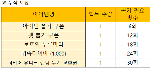 설명: 한정 뽑기에서는 랜덤하게 아이템을 획득 할 수 있습니다. 해당 뽑기를 이용하여서 다양한 아이템을 획득하고 희귀한 상품을 획득할 기회를 노려보세요!