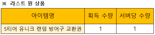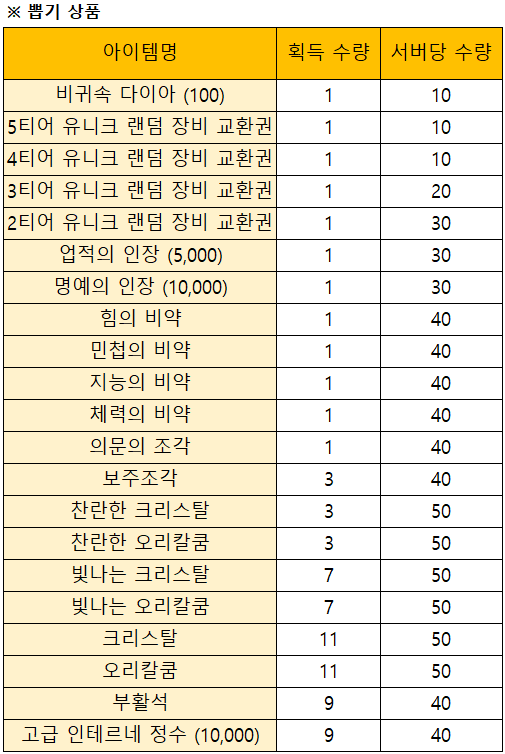 *상자를 열면 상기의 아이템 중 하나를 얻을 수 있습니다.