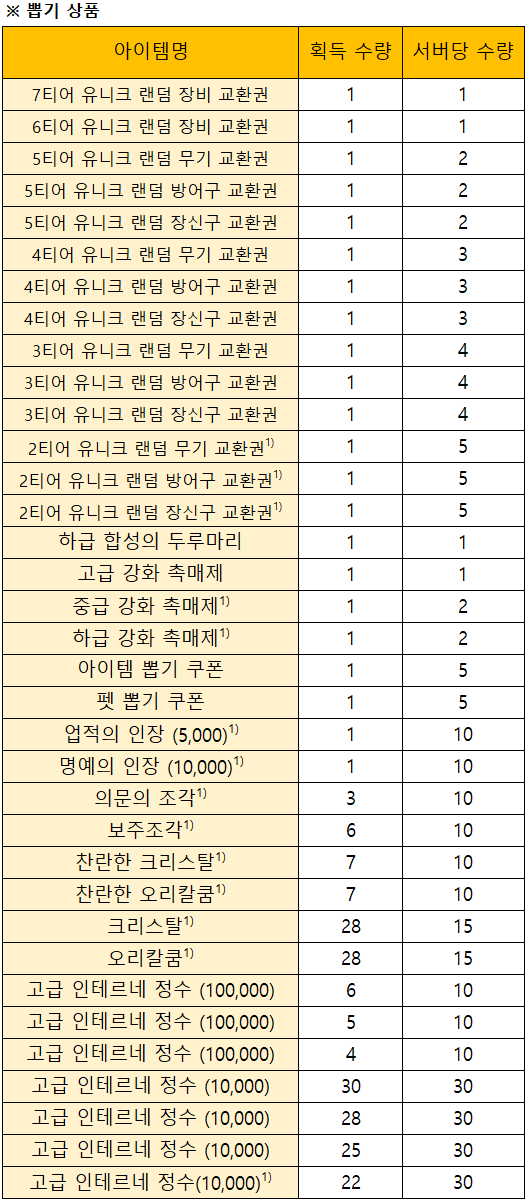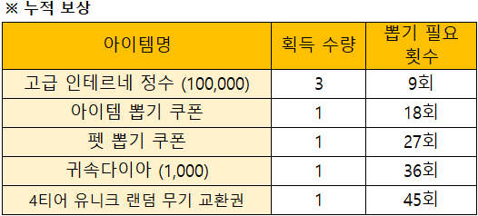 순위에 따른 이벤트 보상은 아래의 표를 참조해주시길 부탁드립니다.