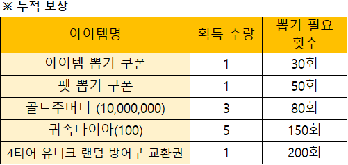 설명: 한정 뽑기에서는 랜덤하게 아이템을 획득 할 수 있습니다. 해당 뽑기를 이용하여서 다양한 아이템을 획득하고 희귀한 상품을 획득할 기회를 노려보세요!