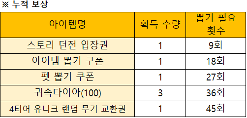 ●이벤트 보상 (게임 내 ‘보상’-‘일일 활약도’ 항목 참고)