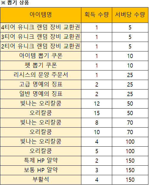 이벤트 기간 중에 획득 할 수 있는 보상은 아래와 같습니다.