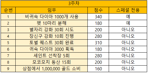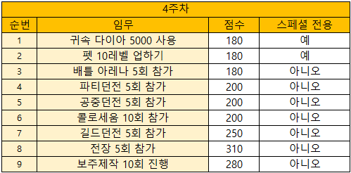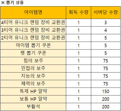 이벤트 보상은 아래의 표를 참조해주시길 부탁드립니다.