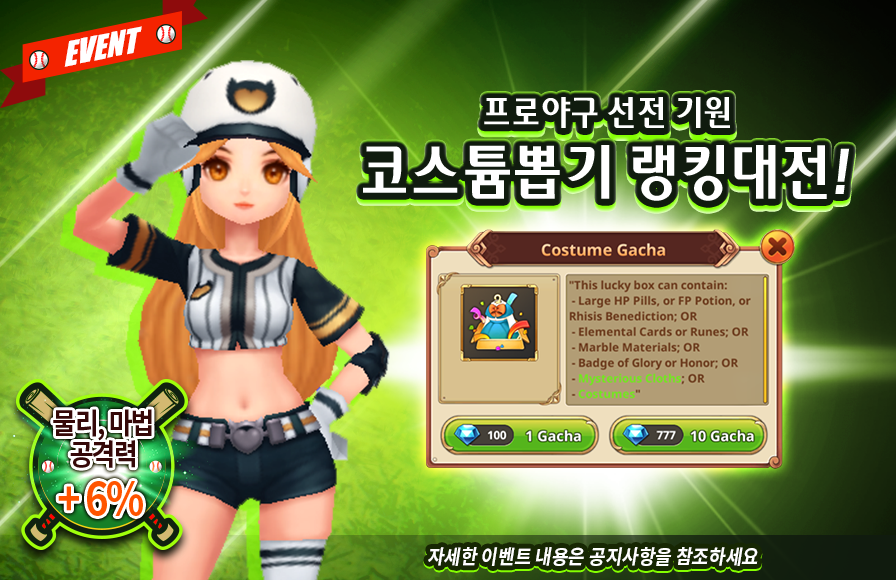 설명: 아주 진귀한 코스튬을 여러 개 뽑을 수 있는 코스튬 뽑기를 하시고 상품도 얻을 수 있는 기회!