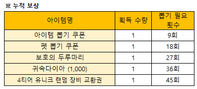 2. 누적 포인트 보상 기준 달성 시 해당 포인트 보상을 우편을 통해 즉시 획득할 수 있습니다.