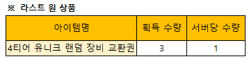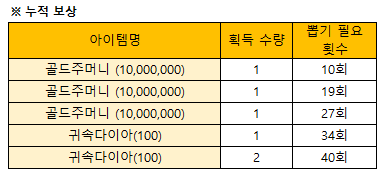 이벤트 보상은 아래의 표를 참조해주시길 부탁드립니다.