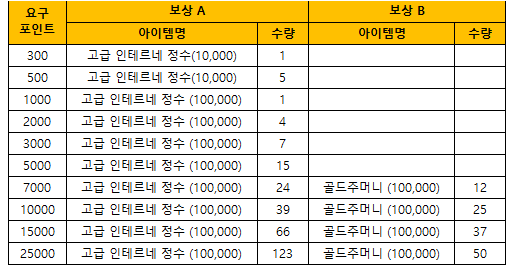 이벤트 기간 중에 획득 할 수 있는 보상은 아래와 같습니다.