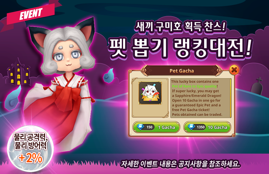 설명: 아주 진귀한 펫을 여러 개 뽑을 수 있는 수호 펫 뽑기를 하시고 보상도 얻을 수 있는 기회!