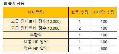 설명: 한정 뽑기에서는 랜덤하게 아이템을 획득 할 수 있습니다. 해당 뽑기를 이용하여서 다양한 아이템을 획득하고 희귀한 상품을 획득할 기회를 노려보세요!