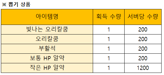 *상자를 열면 상기의 아이템 중 하나를 얻을 수 있습니다.