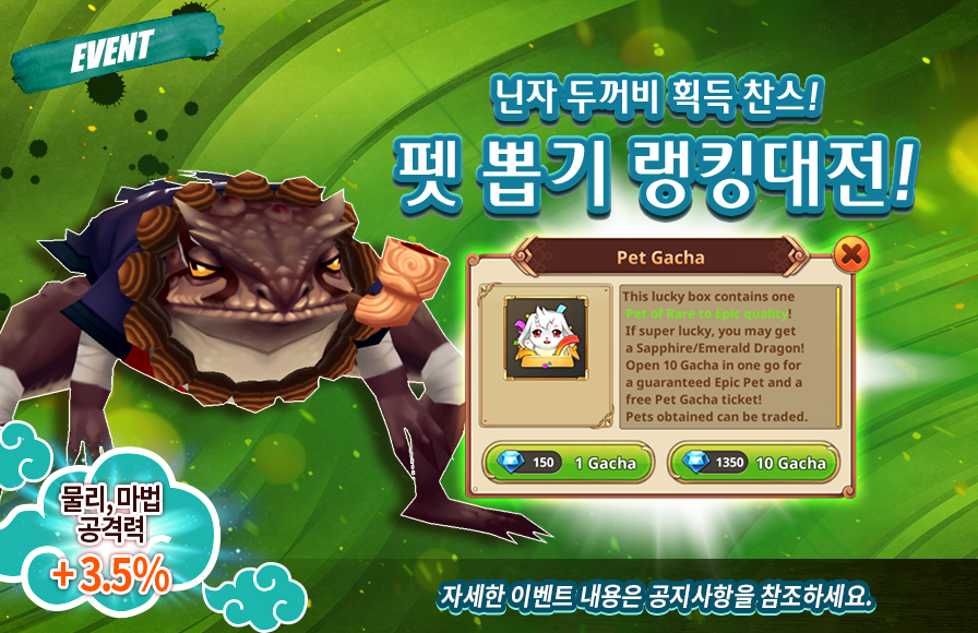 설명: 아주 진귀한 펫을 여러 개 뽑을 수 있는 수호 펫 뽑기를 하시고 보상도 얻을 수 있는 기회!
