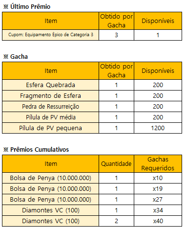 * O evento terminará mais cedo se todos os prêmios do Gacha Limitado estiverem esgotados.