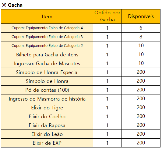 * O evento terminará mais cedo se todos os prêmios do Gacha Limitado estiverem esgotados.
