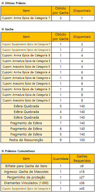 * O evento terminará mais cedo se todos os prêmios do Gacha Limitado estiverem esgotados.
