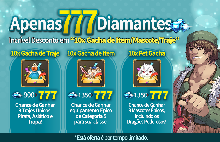 10x Gacha de Mascotes 1350 Diamantes -> 777 Diamantes