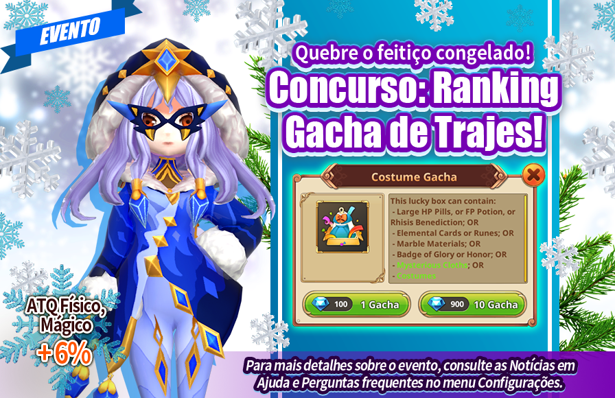 * O evento terminará mais cedo se todos os prêmios do Gacha Limitado estiverem esgotados.